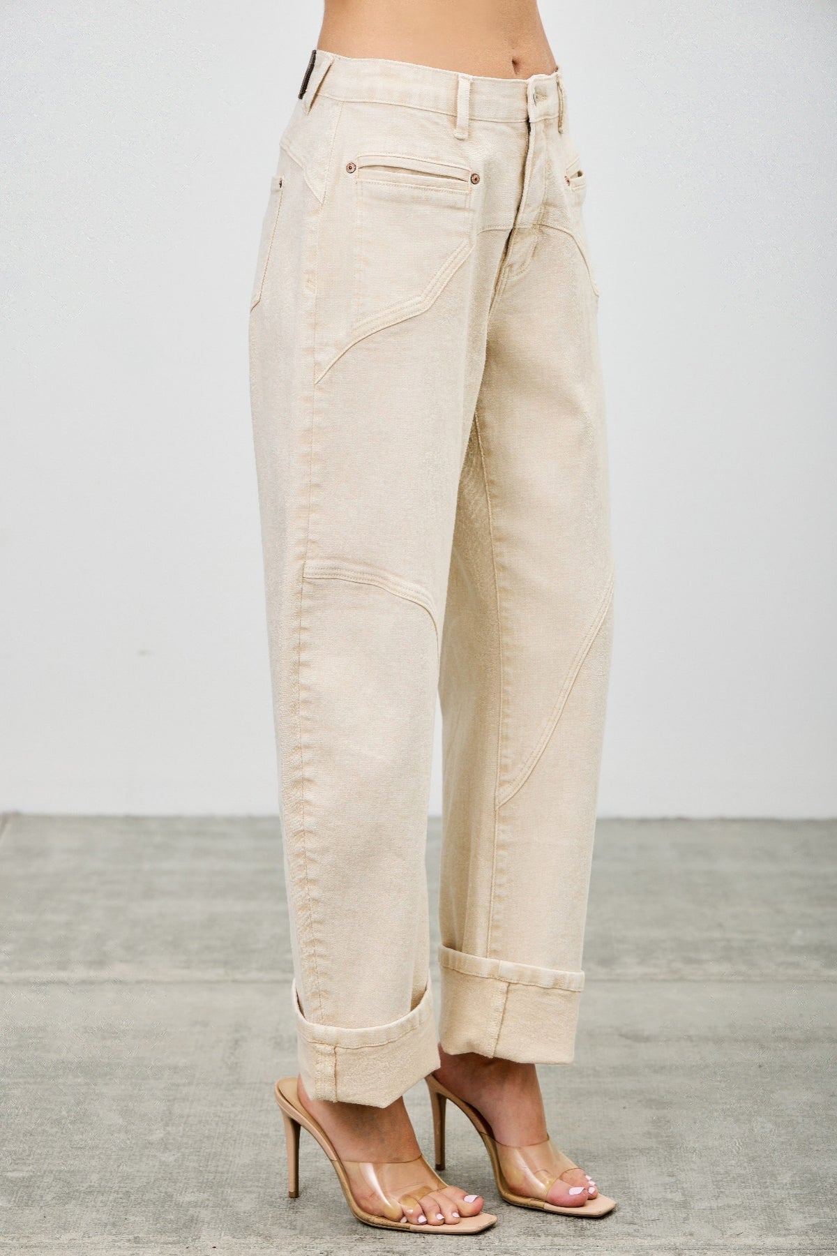 Bring bold personality to your denim lineup with these high-rise colored western barrel jeans. Featuring a flattering high-rise fit and a modern barrel-leg silhouette, they offer a fresh twist on classic western styling. The printed finish adds a vibrant, standout element, while the stretch fabric blend ensures all-day comfort with structure. A zipper fly and 5-pocket styling keep the look grounded in timeless denim design. Perfect for making a statement, these jeans pair effortlessly with basics or layered looks.